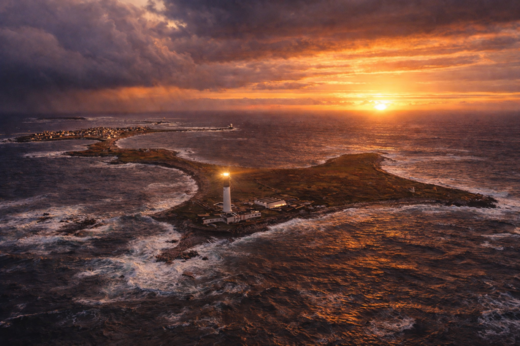 À l’extrême ouest de la Bretagne, dans le Finistère, face à la pointe du Raz, se trouve l’Île de Sein. Posée sur l’océan et séparée du continent par la redoutable chaussée de Sein, l’île s’étire sur une étroite bande de terre, battue par les vents. Sa superficie est de 58 hectares (0,58 km²), et son altitude maximale ne dépasse pas 6 mètres. Ici, rien n’arrête le vent, rien ne retient les tempêtes, et la mer façonne la vie des habitants depuis toujours.